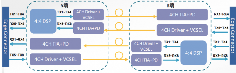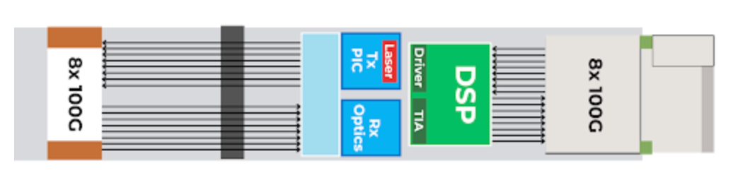 架構(gòu)特征:模塊內(nèi)完全無 DSP,信號處理前移至 Host SerDes