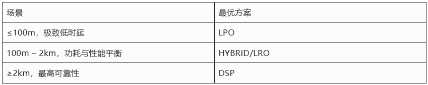 在這一并行體系中,HYBRID(半 DSP)方案作為一種工程化程度更高的中間形態(tài),正在顯示出比典型 LRO 更優(yōu)的系統(tǒng)與產(chǎn)業(yè)綜合價值。