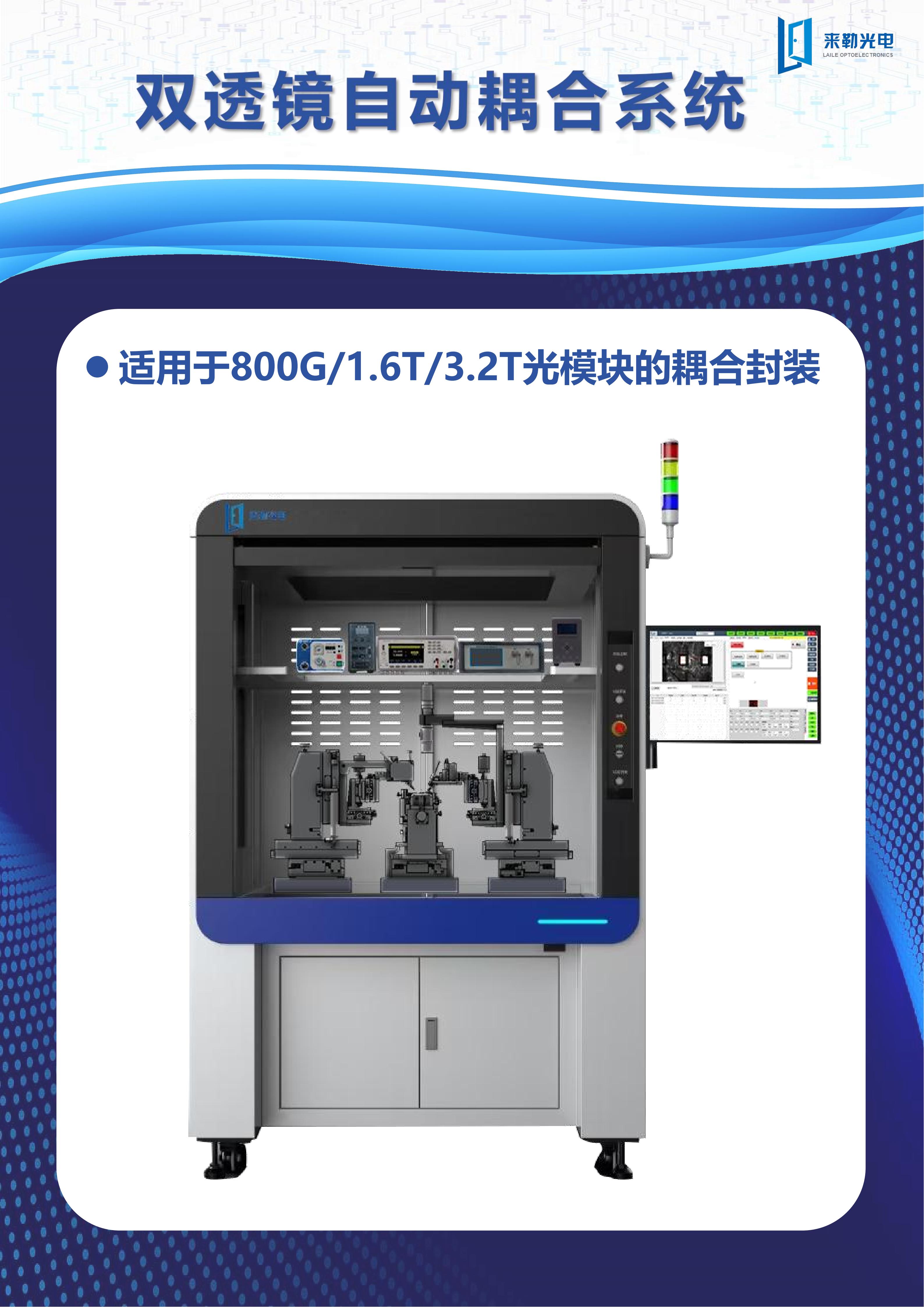 ICC訊 面對AI算力集群驅動的光模塊需求爆發(fā)式增長,800G、1.6T光模塊需求遠超預期,來勒光電自主研發(fā)的雙透鏡自動耦合封裝系統(tǒng),能夠很好解決光模塊耦合封裝效率難題,設備具有高精度圖像識別和定位功能,實現自動化上料、自動點膠與自動UV固化功能。設備可一次性上料5組模塊,操作便捷,一人可同時操控5臺設備,極大地提高了生產效率,節(jié)省人工。目前已廣泛應用于800G/1.6T/3.2T光模塊的耦合封裝。