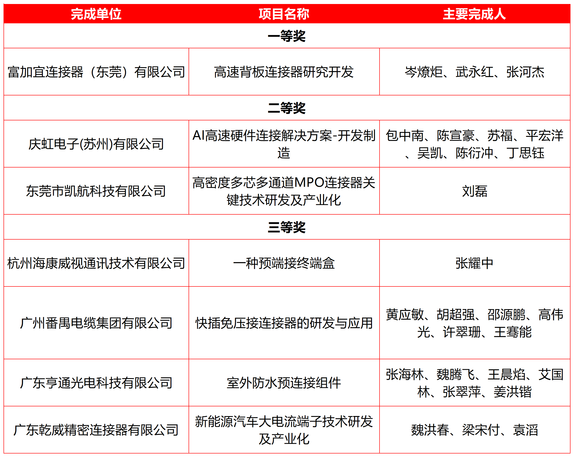 廣東省連接器行業(yè)科學技術(shù)進步獎是 廣東省連接器協(xié)會頒發(fā)的行業(yè)獎項,旨在表彰在連接器技術(shù)領(lǐng)域取得重大突破、推動行業(yè)技術(shù)進步的企業(yè)和科研團隊。 廣東省連接器協(xié)會作為國內(nèi)省級行業(yè)協(xié)會,近年來參與了2項重要的行業(yè)標準制定,主導制定15項團體標準、4項全國企業(yè)標準領(lǐng)跑者標準、1項大灣區(qū)標準,在行業(yè)內(nèi)具有相當?shù)臋?quán)威性和影響力。