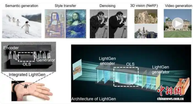 ICC訊 上海交通大學(xué)19日發(fā)布消息稱,該校集成電路學(xué)院(信息與電子工程學(xué)院)圖像通信與網(wǎng)絡(luò)工程研究所陳一彤課題組在新一代算力光芯片方向取得重大突破,首次實現(xiàn)了支持大規(guī)模語義視覺生成模型的全光計算芯片LightGen。