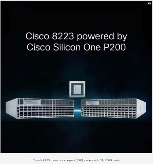 同樣,思科在其太比特網(wǎng)絡設備方面也勢頭強勁,其核心是Silicon One P200芯片,該芯片可為要求嚴苛的AI/ML數(shù)據(jù)中心網(wǎng)絡提供51.2 Tbps的吞吐量,支持連接分布式AI集群的"橫向擴展"架構。旗艦產(chǎn)品是思科8223路由器,這是一個緊湊型(3RU)系統(tǒng),具有64個800G端口,旨在為大規(guī)模AI訓練提供骨干支持。