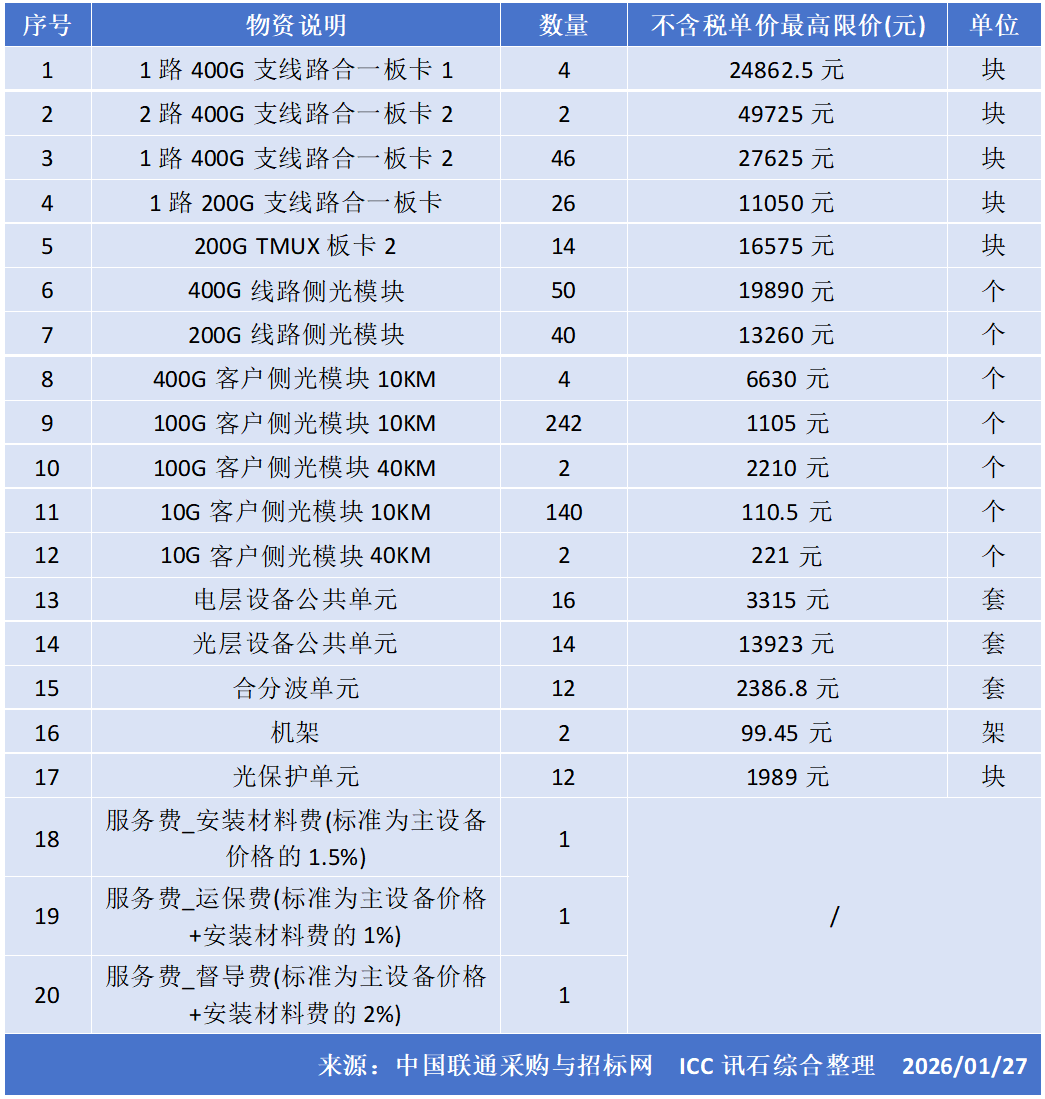 ICC訊 2026年1月26日,中國(guó)聯(lián)通采購(gòu)與招標(biāo)網(wǎng)發(fā)布《2025年中國(guó)聯(lián)通上海本地模塊化波分設(shè)備集中采購(gòu)中標(biāo)候選人公示》,北京格林威爾、上海欣諾通信兩廠商成功入選。