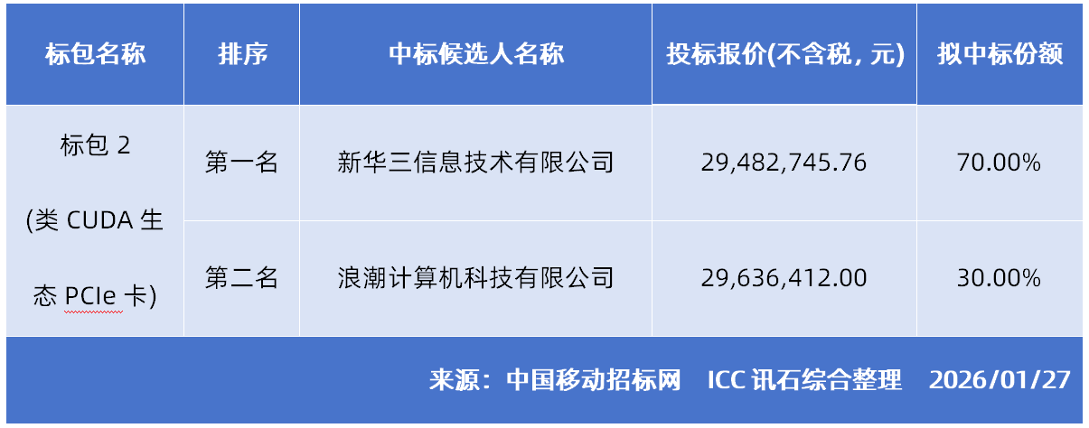 此次補充采購可視為對2025年主采購項目的延伸與補充。在2025年6月公示的主采購中,中國移動已對“類CUDA生態(tài)”設(shè)備進行了大規(guī)模集采,新華三、中興通訊、浪潮等企業(yè)分別在PCIe卡、普通性能、高性能及高品質(zhì)扣卡等標(biāo)包中獲選。