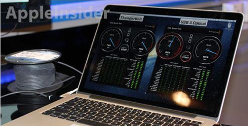 Macworld/iWorld 2013展會(huì)上康寧展示的 Thunderbolt 和 USB 排線,長(zhǎng)度分別為100 米和30 米,除了更長(zhǎng)及高速度外,排線的直徑也較??祵幑痉謩e使用傳統(tǒng)機(jī)械硬盤(pán)和SSD固態(tài)硬盤(pán)的電腦進(jìn)行了速度測(cè)試,但是機(jī)械硬盤(pán)由于讀寫(xiě)限制,所以得不到理想的結(jié)果的。其中USB 3.0的光纜最長(zhǎng)為30米,而Thunderbolt光纜最長(zhǎng)可達(dá)100米。