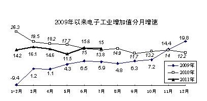 其中關(guān)于電子制造業(yè)方面,1-7月,電子制造業(yè)增加值同比增長14.8%。從月度運(yùn)行情況看,受出口影響,5月份生產(chǎn)增速一度下滑到11.5%,6、7兩個(gè)月止跌回升增勢(shì)基本平穩(wěn)。主要產(chǎn)品中,電子計(jì)算機(jī)整機(jī)產(chǎn)量同比增長34.5%,程控交換機(jī)、集成電路產(chǎn)量分別增長35%和18.3%,彩色電視機(jī)產(chǎn)量增長3.7%。