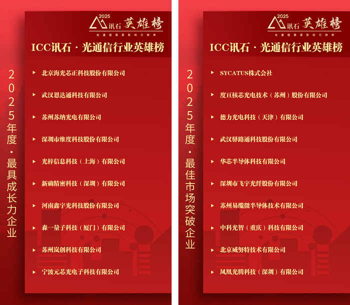 “三獎(jiǎng)四榜” | 2025年度ICC訊石·光通信行業(yè)英雄榜正式揭榜!