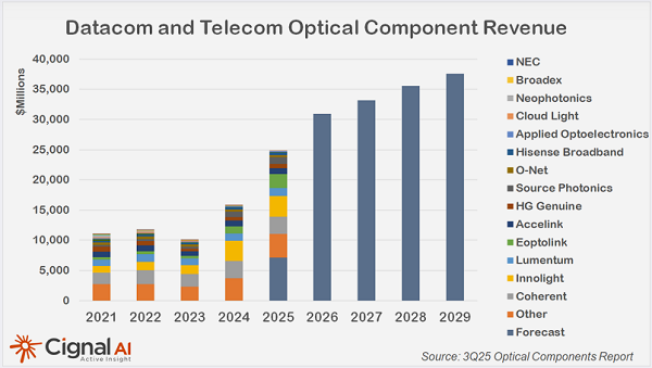 文章標題:CignalAI:2025年全球光器件營收近250億美元