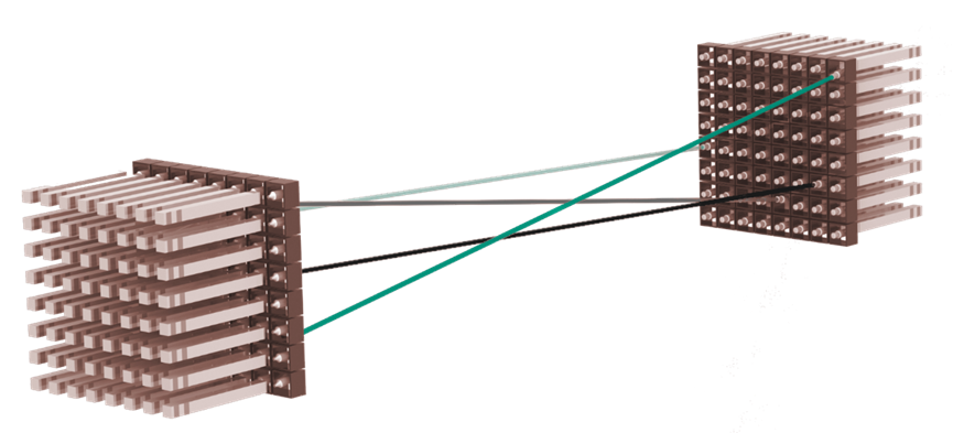 作為 HUBER+SUHNER 旗下光電路交換專業(yè)品牌,POLATIS® OCS 憑借 25 年互連系統(tǒng)工程積累,基于自研專利 DirectLight? 光束偏轉(zhuǎn)技術(shù),為全光交換提供了極致穩(wěn)定性與靈活性的實(shí)現(xiàn)基礎(chǔ)。該技術(shù)通過緊湊型壓電陶瓷驅(qū)動,對來自輸入與輸出光纖陣列的準(zhǔn)直光束進(jìn)行精確對準(zhǔn),實(shí)現(xiàn)低損耗、低失真且低串?dāng)_的光連接。