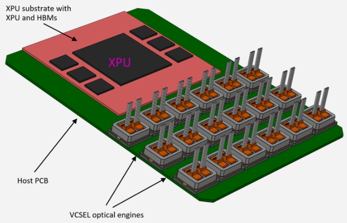 圖9. 3.2T VCSEL NPO引擎模塊示意圖。