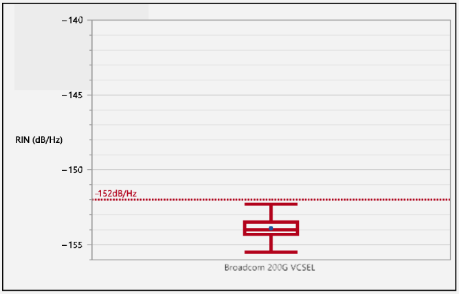 圖5. 200 Gbps PAM4 VCSEL在9 mA偏置下的相對強(qiáng)度噪聲,RIN低于?152 dB/Hz。