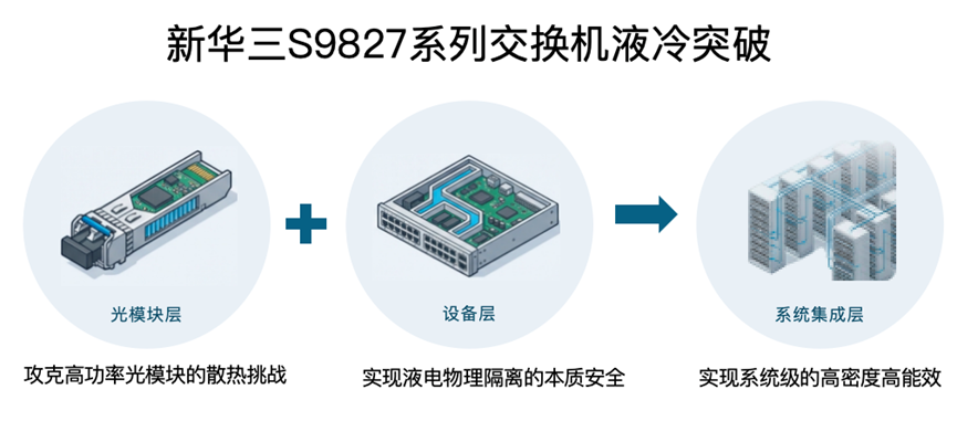 傳統(tǒng)散熱是高密度部署的瓶頸,迫使設(shè)計在體積與性能間妥協(xié)。H3C S9827系列交換機的液冷技術(shù),則扭轉(zhuǎn)了這一邏輯,將其從限制因素轉(zhuǎn)化為實現(xiàn)極限集成的核心使能技術(shù)。