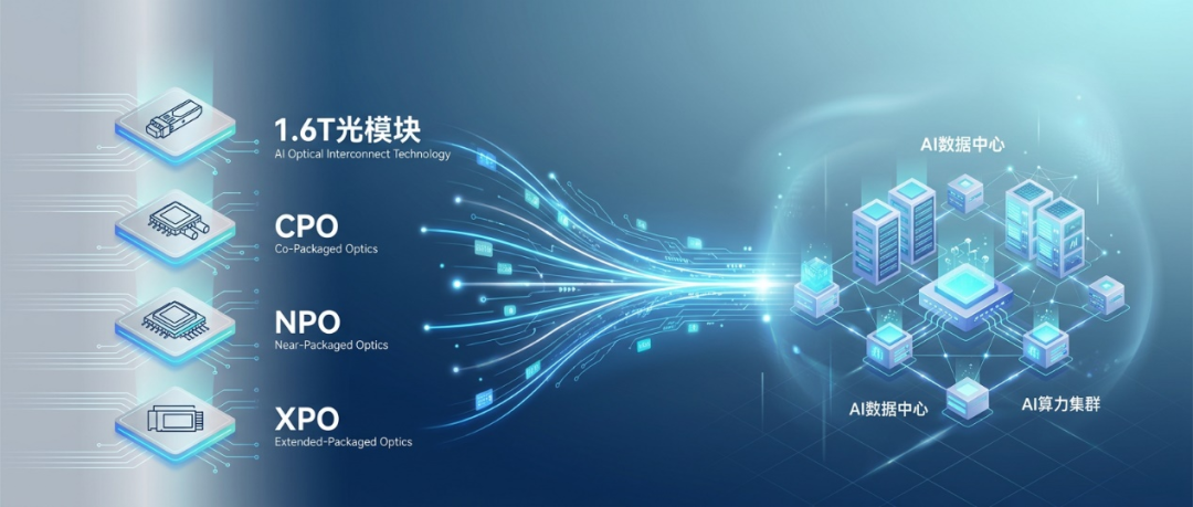 ICC訊 AI算力的指數(shù)級爆發(fā),正推動光互連技術(shù)邁入多路線并行、多方案適配的全新發(fā)展階段。從主流量產(chǎn)的1.6T可插拔光模塊,到前沿探索的CPO光電共封裝,再到高性價比過渡的NPO近共封裝、高密度升級的XPO液冷可插拔,四大技術(shù)并非非此即彼的替代關(guān)系,而是精準(zhǔn)匹配不同算力場景、產(chǎn)業(yè)階段的互補方案。