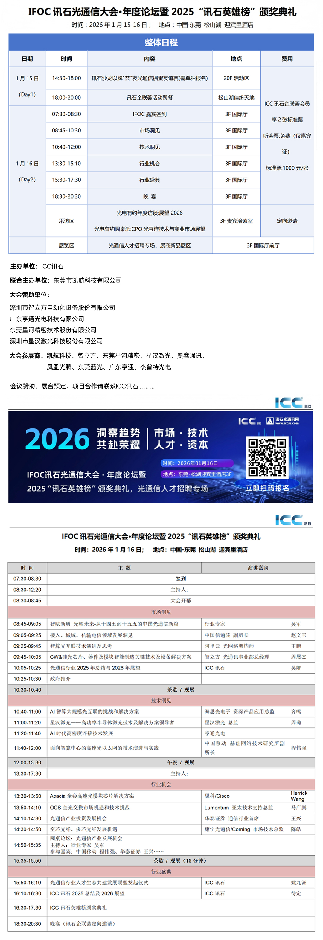 2026年的市場(chǎng)將如何延續(xù)?1月16日,ICC訊石將主辦IFOC訊石光通信大會(huì)·年度論壇暨2025“訊石英雄榜”頒獎(jiǎng)典禮,同期舉辦光通信人才招聘專場(chǎng)對(duì)接?;顒?dòng)將從市場(chǎng)、技術(shù)、人才、資本四大維度展開(kāi),為您撥開(kāi)行業(yè)發(fā)展的迷霧。