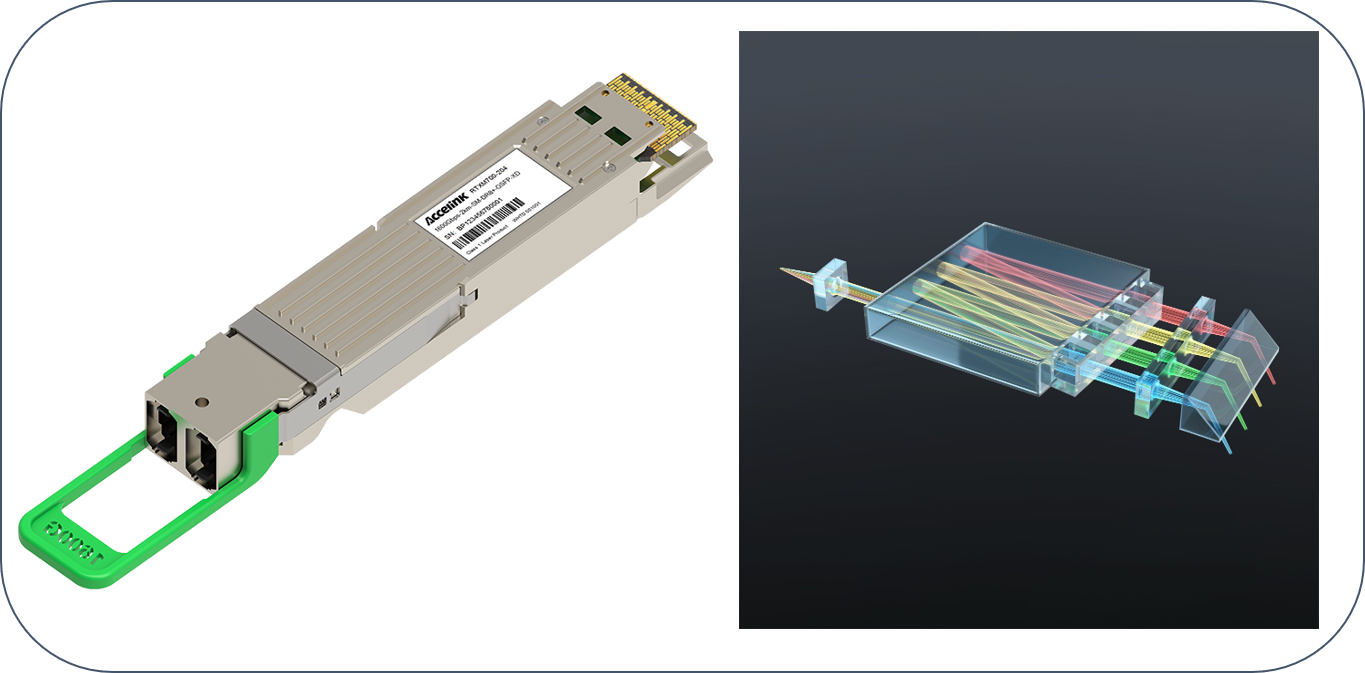 1.6T高速光模塊(來源:光迅科技)和光模塊微透鏡組件示意圖(來源:炬光科技)