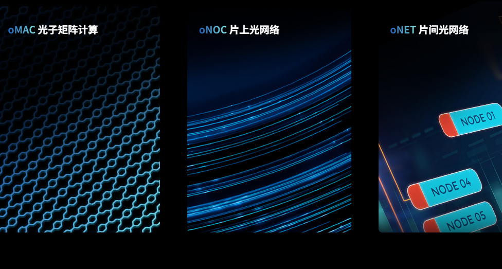 依托這一突破,曦智科技逐步將實(shí)驗(yàn)室成果轉(zhuǎn)化為工程能力,構(gòu)建起覆蓋數(shù)據(jù)計算、片內(nèi)傳輸、跨節(jié)點(diǎn)互連的全鏈條技術(shù)體系,獨(dú)創(chuàng)了光子矩陣計算(oMAC)、片上光網(wǎng)絡(luò)(oNOC)和片間光網(wǎng)絡(luò)(oNET)三大核心技術(shù)。