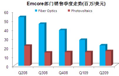 Emcore公司昨天公布了截止于6月30日未審計(jì)的2009年第三季度財(cái)務(wù)報(bào)告。該公司第三季度總營收3850萬美元,與上一季度相比下降480萬美元,降幅11%。