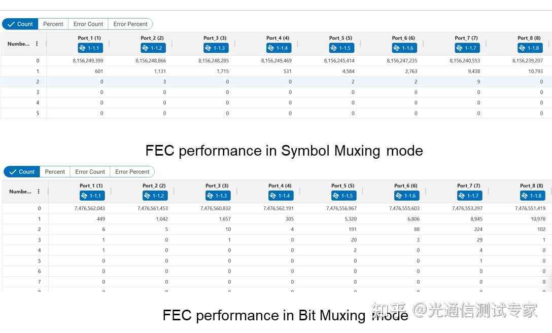 同一1.6T光模塊在Bit multiplexing和Symbol multiplexing模式下FEC性能