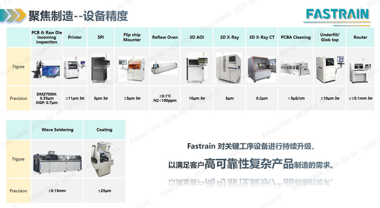 ---高精度、超高速SMT生產線:DEK/MPM印刷機+Koh Young/Parmi 3D錫膏檢查機+ASMPT Siplace貼片機+Jutze 2D 光學檢查機+JT/Sonic 10溫區(qū)氮氣回流焊+Saki/ViTrox 3D光學檢查機