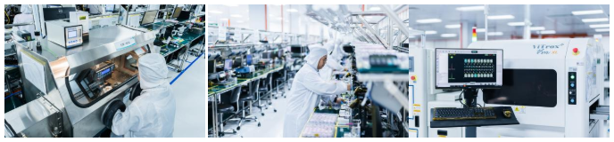 ---完整配備的周邊設備,包括:PCBA清洗機(Auto-water-cleaning/Auto-plasma-cleaning)、分板機(Routing/Laser)、點膠機(Globtop/Underfill/Conformal coating)、2D X-ray、3D X-ray(AXI)、ICT/Flying Probe/FCT測試、鐳雕機、BGA返修臺、Ball Drop植球機等