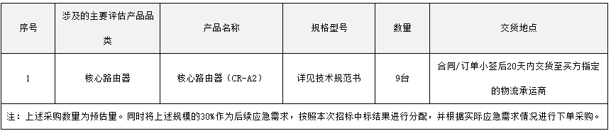 ICC訊 中國(guó)電信2022年核心路由器(CR)設(shè)備集中采購(gòu)項(xiàng)目,招標(biāo)人為中國(guó)電信集團(tuán)有限公司和中國(guó)電信股份有限公司,招標(biāo)代理機(jī)構(gòu)為中捷通信有限公司。項(xiàng)目已具備招標(biāo)條件,現(xiàn)進(jìn)行公開(kāi)招標(biāo),特邀請(qǐng)有意向的且具有提供標(biāo)的物能力的潛在投標(biāo)人(以下簡(jiǎn)稱(chēng)投標(biāo)人)參加投標(biāo)。