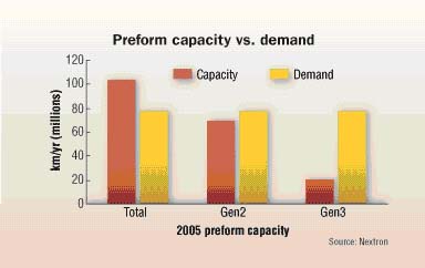 有很多被放棄或者使用舊設(shè)備的工廠被關(guān)閉。自2001年光纖預(yù)制能力已由最高峰時(shí)的1.4億/千米增加到大約1.05億/千米. 價(jià)格的降低會(huì)導(dǎo)致進(jìn)一步的產(chǎn)量縮減。