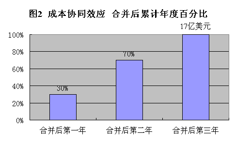 合并將產(chǎn)生顯著的成本協(xié)同效應(yīng) 預(yù)計在本合并后的三年內(nèi) , 將從若干領(lǐng)域取得顯著成本協(xié)同效應(yīng),包括合并支持功能,優(yōu)化供應(yīng)鏈和采購結(jié)構(gòu),充分利用經(jīng)擴(kuò)大的研發(fā)和服務(wù)基礎(chǔ),以及減少全球工作人員約 10% 。本次合并亦將導(dǎo)致大約 14 億歐元( 17 億美元的)的新現(xiàn)金重組支出,這些支出將主要計入第一年的帳目。預(yù)計,本次重組的絕大部分將在交易生效后 24 個月內(nèi)完成(見圖 2 )。由于協(xié)同效應(yīng)的作用,此次交易預(yù)計將在交易生效后的第一年增加每股盈余,不包括重組支出和無形資產(chǎn)攤還。