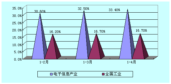 6月6日國家信息產(chǎn)業(yè)部公布了 1-4月我國電子信息產(chǎn)業(yè)的運營情況:我國電子信息產(chǎn)業(yè)繼續(xù)保持良好發(fā)展態(tài)勢,產(chǎn)業(yè)規(guī)模不斷擴(kuò)大,效益增長繼續(xù)好于規(guī)模增長 。1-4月各主要指標(biāo)完成情況明顯高出去年同期水平。1-4月全行業(yè)規(guī)模以上工業(yè)完成銷售收入11043.4億元,同比增長32.2%;工業(yè)增加值2319.7億元,同比增長33.4%;利稅總額513.4億元,同比增長25.7%。