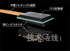 在用于配備便攜終端這一設(shè)想下,通過采用MEMS技術(shù)制造光電轉(zhuǎn)換部件的反光鏡以及導(dǎo)波路減小了體積。光電轉(zhuǎn)換部與連接器結(jié)合的部分,其外形尺寸為3.6mm×6.5mm×1.9mm。柔性底板采用了可在表面封裝松下電工試制的光學(xué)及電氣零部件的“光電柔性布線底板”。