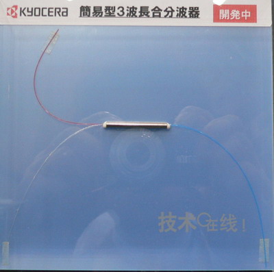 京瓷正在開發(fā)結(jié)構(gòu)比原來更為簡單的3波長合波分波器,并在“CEATEC JAPAN 2007”展會上參考展出了試制品?!伴_發(fā)基本結(jié)束,目前已進入質(zhì)量評估階段。目標是2008年內(nèi)實現(xiàn)投產(chǎn)”(解說員)。通過簡化結(jié)構(gòu),成本可降至原來的一半左右。