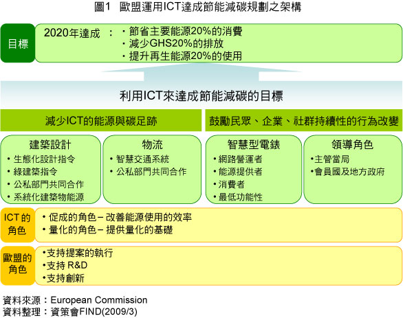 ICT達(dá)成節(jié)能減碳之政策框架(圖1)。