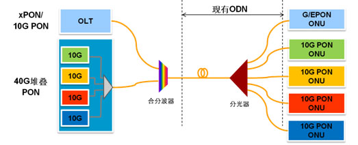 PON承載在不同的波長上堆疊而成,從而現(xiàn)有G-