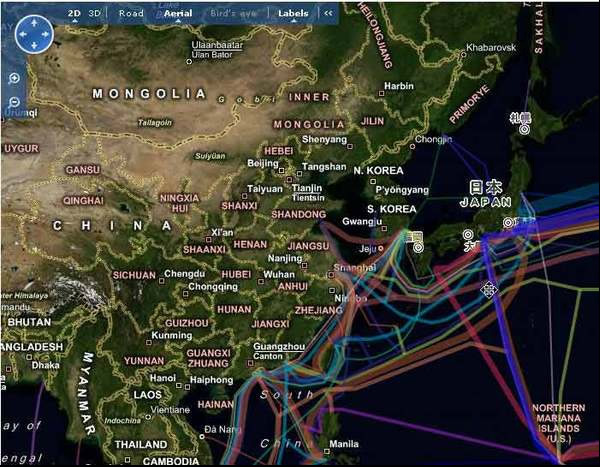 從地圖上可以看到,中國大陸的海底光纜連接點(diǎn)只有三個(gè),因此非常容易對出入境的信息進(jìn)行控制。
