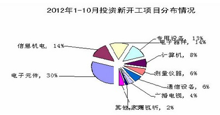 1-10月,電子信息產(chǎn)業(yè)新開工項(xiàng)目6395個(gè),同比增長(zhǎng)7.1%,比去年同期下降54.8個(gè)百分點(diǎn)。其中廣播電視設(shè)備、計(jì)算機(jī)和電子測(cè)量?jī)x器行業(yè)新開工項(xiàng)目數(shù)增長(zhǎng)超過(guò)100%,電子器件和信息機(jī)電行業(yè)新開工項(xiàng)目下滑近20%。
