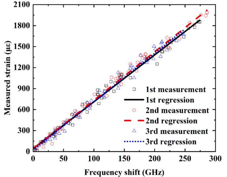 基于光頻域反射技術(shù)的分布式光纖傳感器(采用武漢昊衡科技OSI-S系列設(shè)備),適用于超高強(qiáng)海砂混凝土長期蠕變和收縮應(yīng)變的間歇測(cè)量,具有測(cè)量精準(zhǔn)、穩(wěn)定、可靠的特點(diǎn),同時(shí)能夠獲取傳統(tǒng)傳感器無法實(shí)現(xiàn)的連續(xù)空間應(yīng)變分布數(shù)據(jù),彌補(bǔ)了傳統(tǒng)監(jiān)測(cè)技術(shù)的局限。