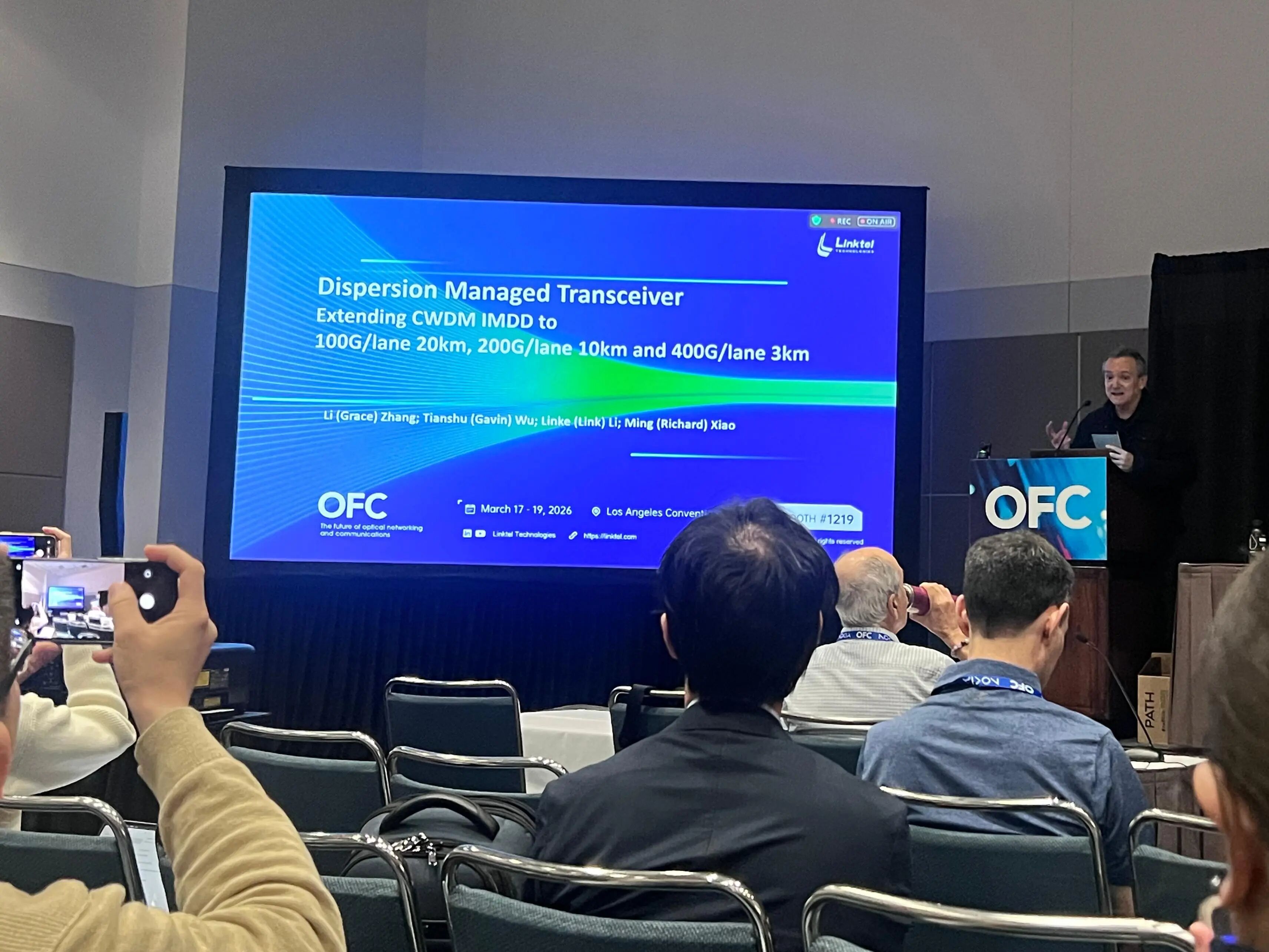 當(dāng)?shù)貢r間3月19日上午,聯(lián)特科技Grace在“Datacenter Subsystems and High Data Rate Transceivers”專題會議中發(fā)表技術(shù)演講,分享色散管理技術(shù)在CWDM IMDD傳輸距離擴(kuò)展方面的研究成果與應(yīng)用實踐,與全球同行展開深入交流,現(xiàn)場反響熱烈。