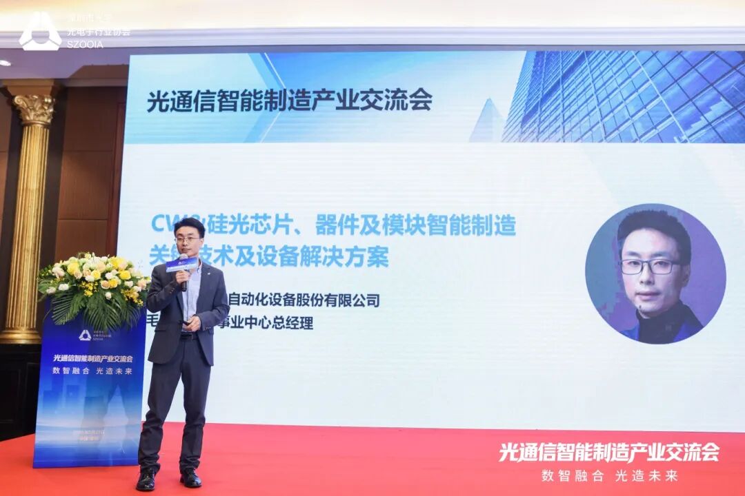 本次交流會,智立方受邀出席,半導體事業(yè)中心總經理毛建作為特邀演講嘉賓,帶來題為《CW & 硅光芯片、器件及模塊智能制造關鍵技術及設備解決方案》的主題分享,深度解讀光通信高端制造的技術路徑與落地實踐。