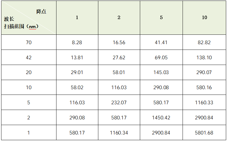 波長(zhǎng)掃描范圍設(shè)為“70”,降點(diǎn)設(shè)為“1”時(shí)