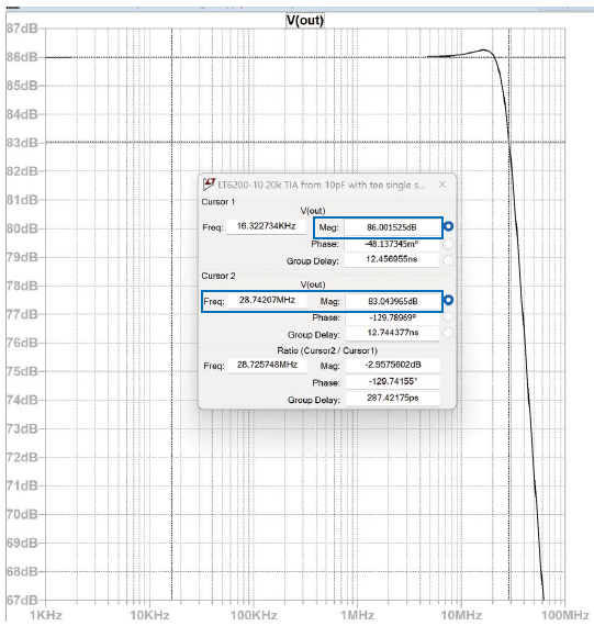 圖3.單電源設(shè)計的T型網(wǎng)絡(luò)的小信號帶寬(SSBW)