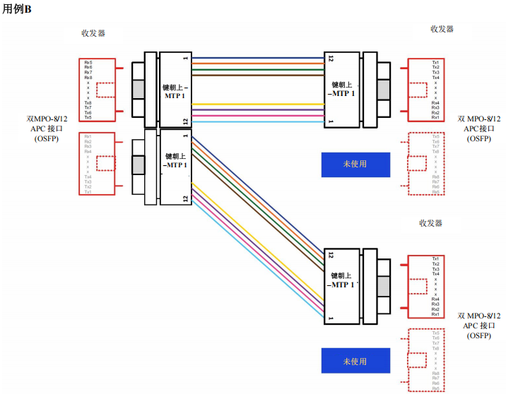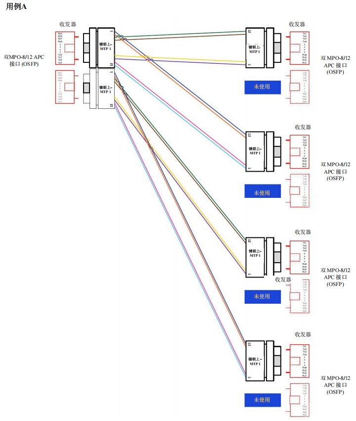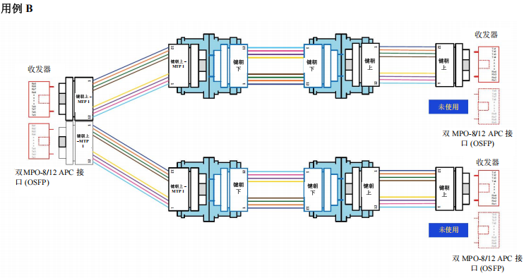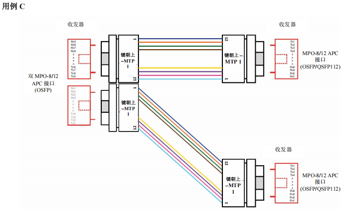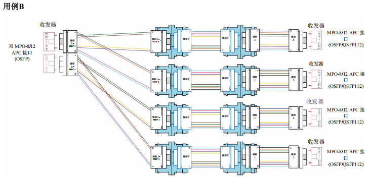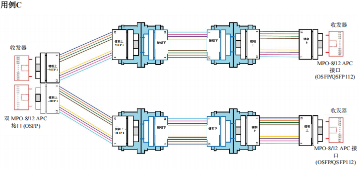 采用點(diǎn)對(duì)點(diǎn)布線連接MPO-8/12 APC到MPO-8/12 APC