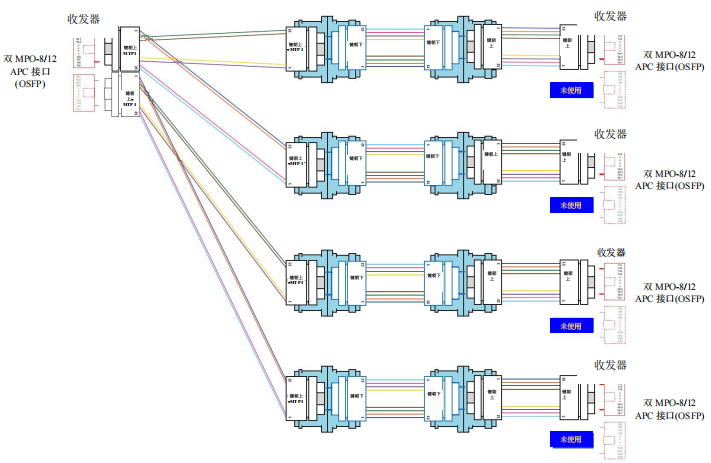 使用結(jié)構(gòu)化布線,通過主干光纜在數(shù)據(jù)中心內(nèi)連接MPO-8/12 APC到MPO-8/12 APC