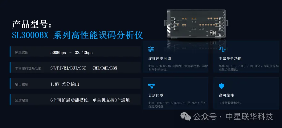 特別是在今年1.6T光模塊需求呈爆發(fā)式增長(zhǎng)的背景下,該領(lǐng)域已成為行業(yè)競(jìng)技的焦點(diǎn)。歐美主流大廠對(duì)其出廠測(cè)試新增了嚴(yán)苛的“壓力眼測(cè)試”環(huán)節(jié),加大了準(zhǔn)入門檻。中星聯(lián)華自主研發(fā)的224G高級(jí)注抖誤碼儀,提供了極具國際競(jìng)爭(zhēng)力的測(cè)試方案。該方案通過高精度注入多種高級(jí)抖動(dòng)(RJ/SJ/PJ/BUJ),能夠精準(zhǔn)評(píng)估光模塊的極限性能,協(xié)助開發(fā)者穿透物理層迷霧,確保系統(tǒng)在極端惡劣環(huán)境下的穩(wěn)定可靠。