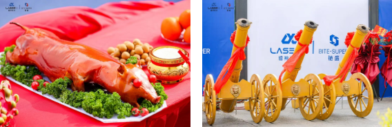 董事長權總攜核心管理團隊手持金刀,開章啟運。金豬賜福,鴻運當頭,儀式結束六門禮炮齊鳴,聲震云霄,宣告公司鴻運新篇正式開啟。